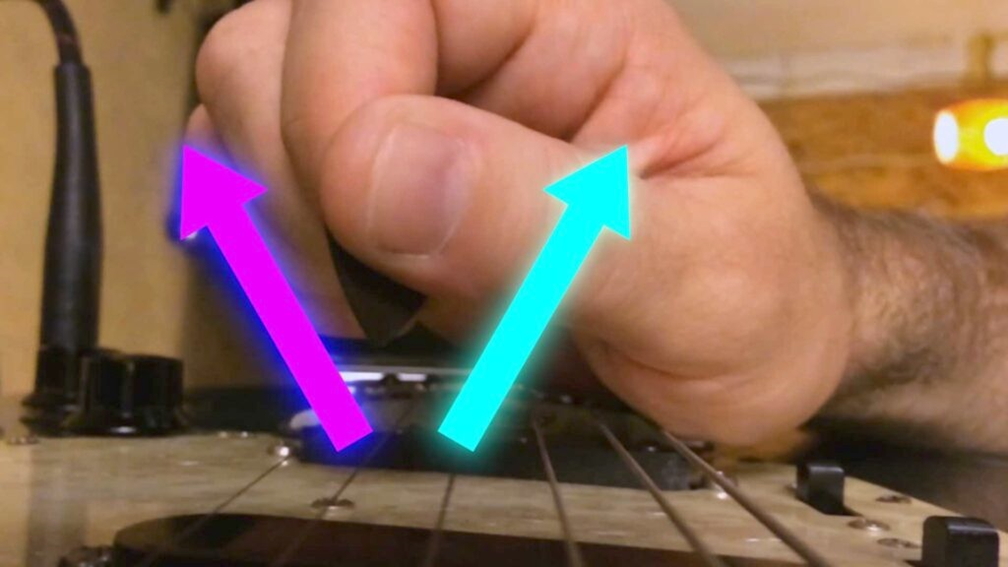 String hopping to sytuacja, w której przy zmianie strun kostka nie porusza się płynnie wzdłuż ich płaszczyzny, lecz dosłownie „skacze” nad nimi. Ręka wykonuje ruch w górę i w dół, aby wydostać się znad jednej struny i trafić w kolejną, zamiast poruszać się po bardziej poziomej, ekonomicznej trajektorii. W praktyce kostka często zbyt głęboko wpada między struny, a następnie musi się „odbić” i wrócić nad ich powierzchnię. To tworzy dodatkowy, niepotrzebny etap ruchu.